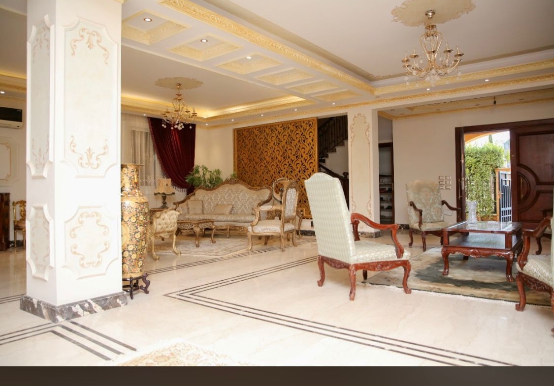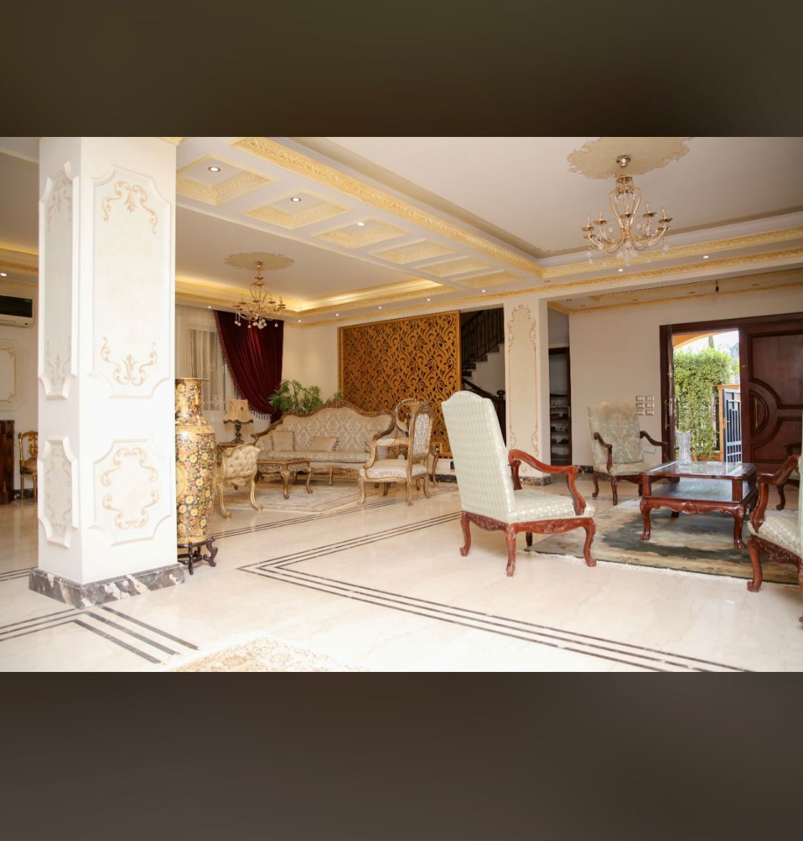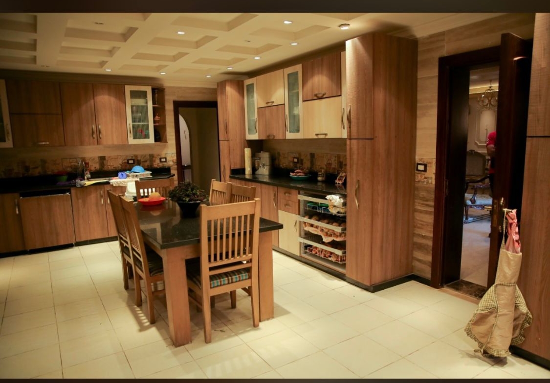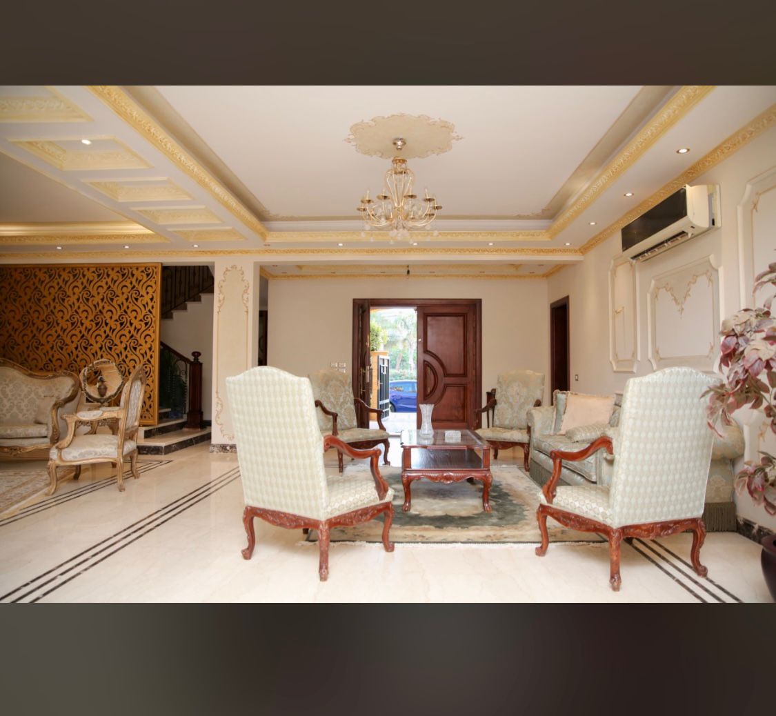 -ريسيبشن 5 قطع + حمام ضيوف + مطبخ + غرفه للمربيه بالحمام الخاص + غرفه سواق بحمام خارج الفيلا + مطبخ 50 متر