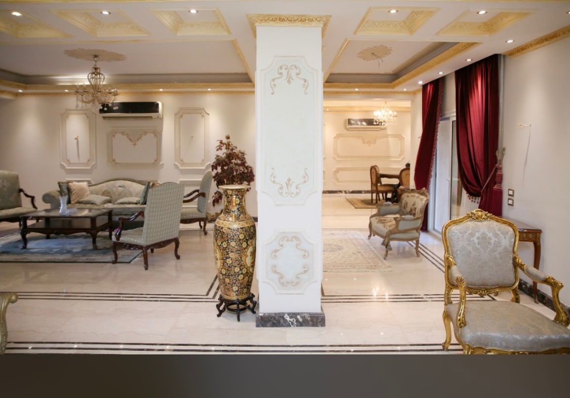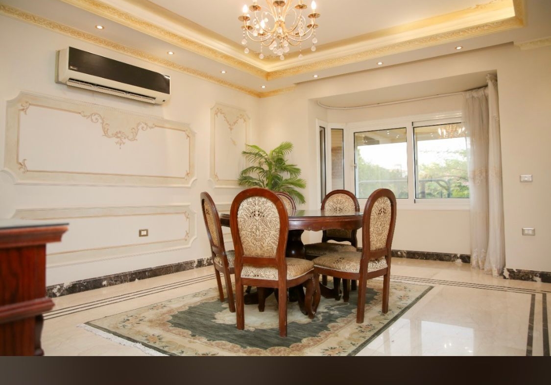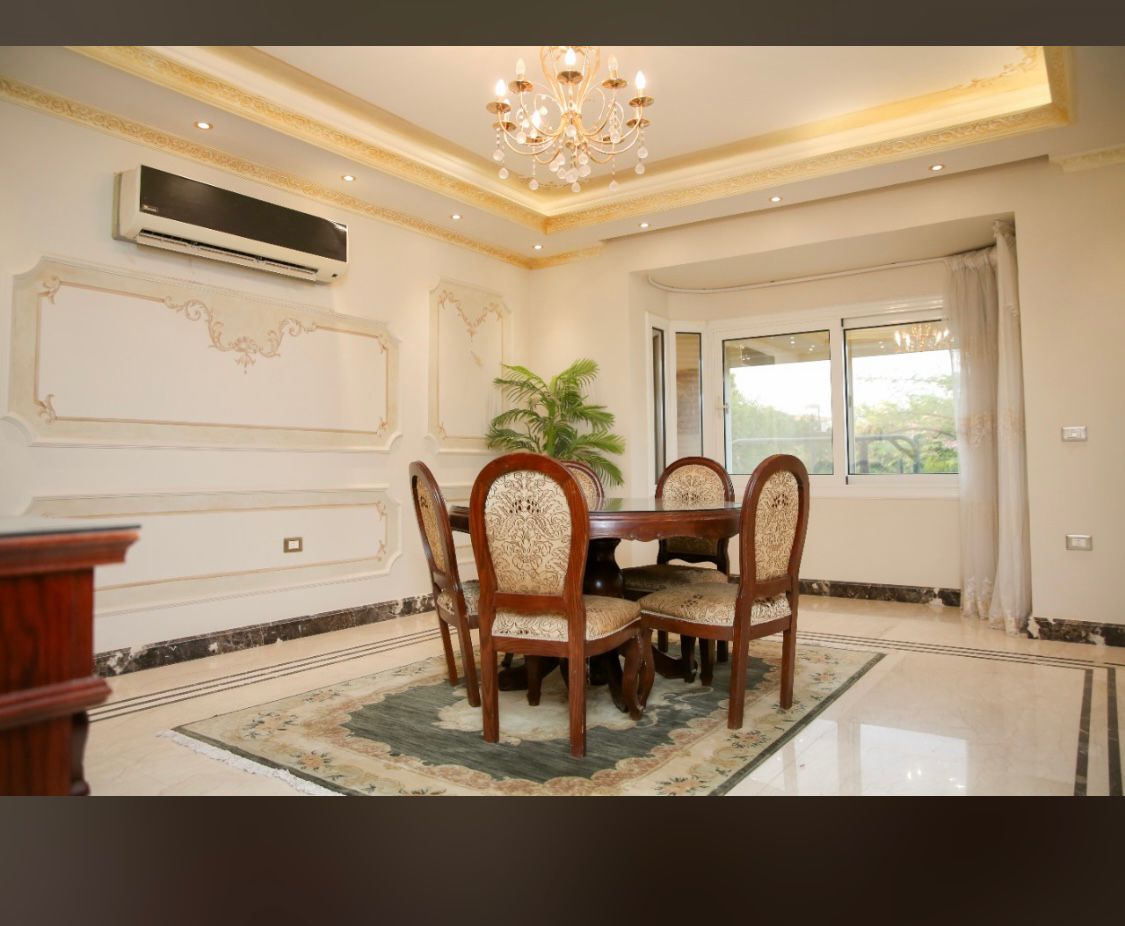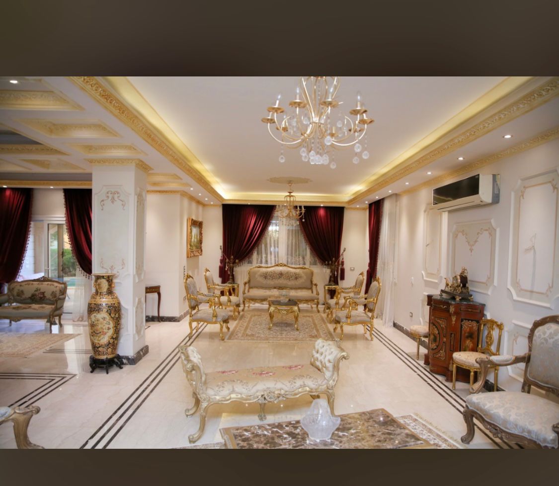 -ريسيبشن 5 قطع + حمام ضيوف + مطبخ + غرفه للمربيه بالحمام الخاص + غرفه سواق بحمام خارج الفيلا + مطبخ 50 متر