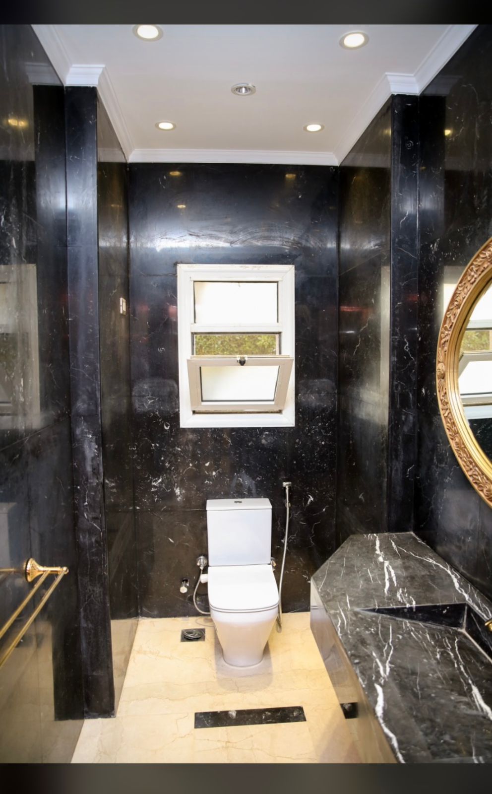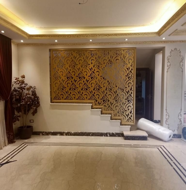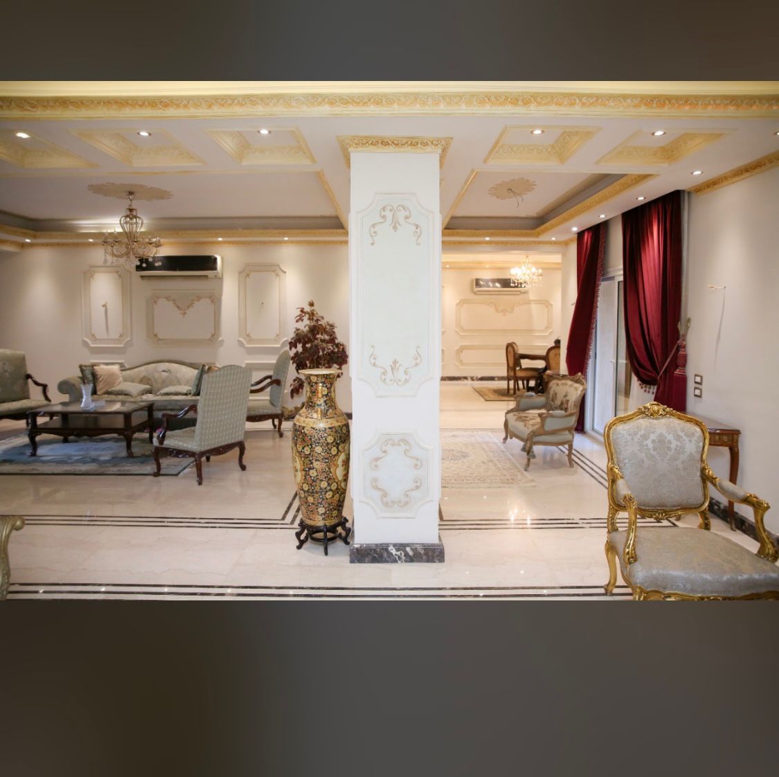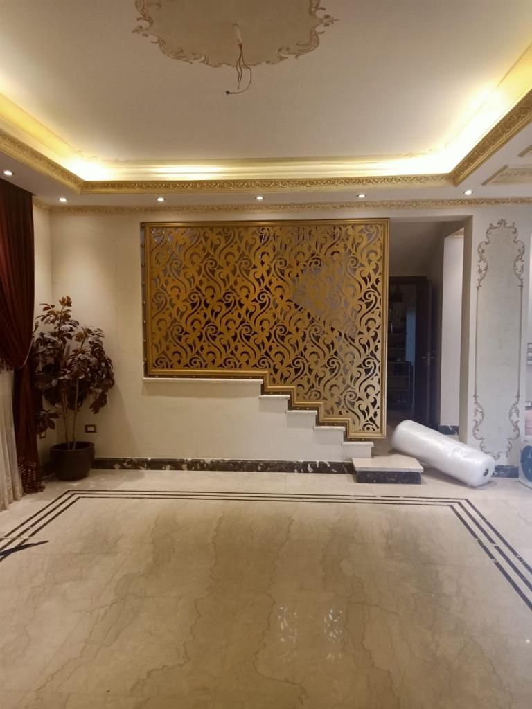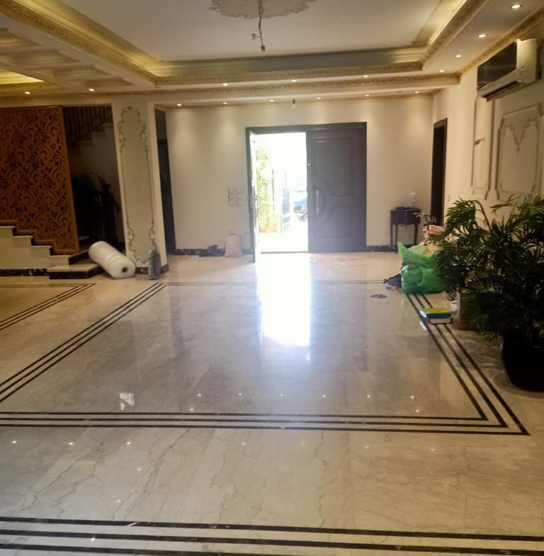 -ريسيبشن 5 قطع + حمام ضيوف + مطبخ + غرفه للمربيه بالحمام الخاص + غرفه سواق بحمام خارج الفيلا + مطبخ 50 متر